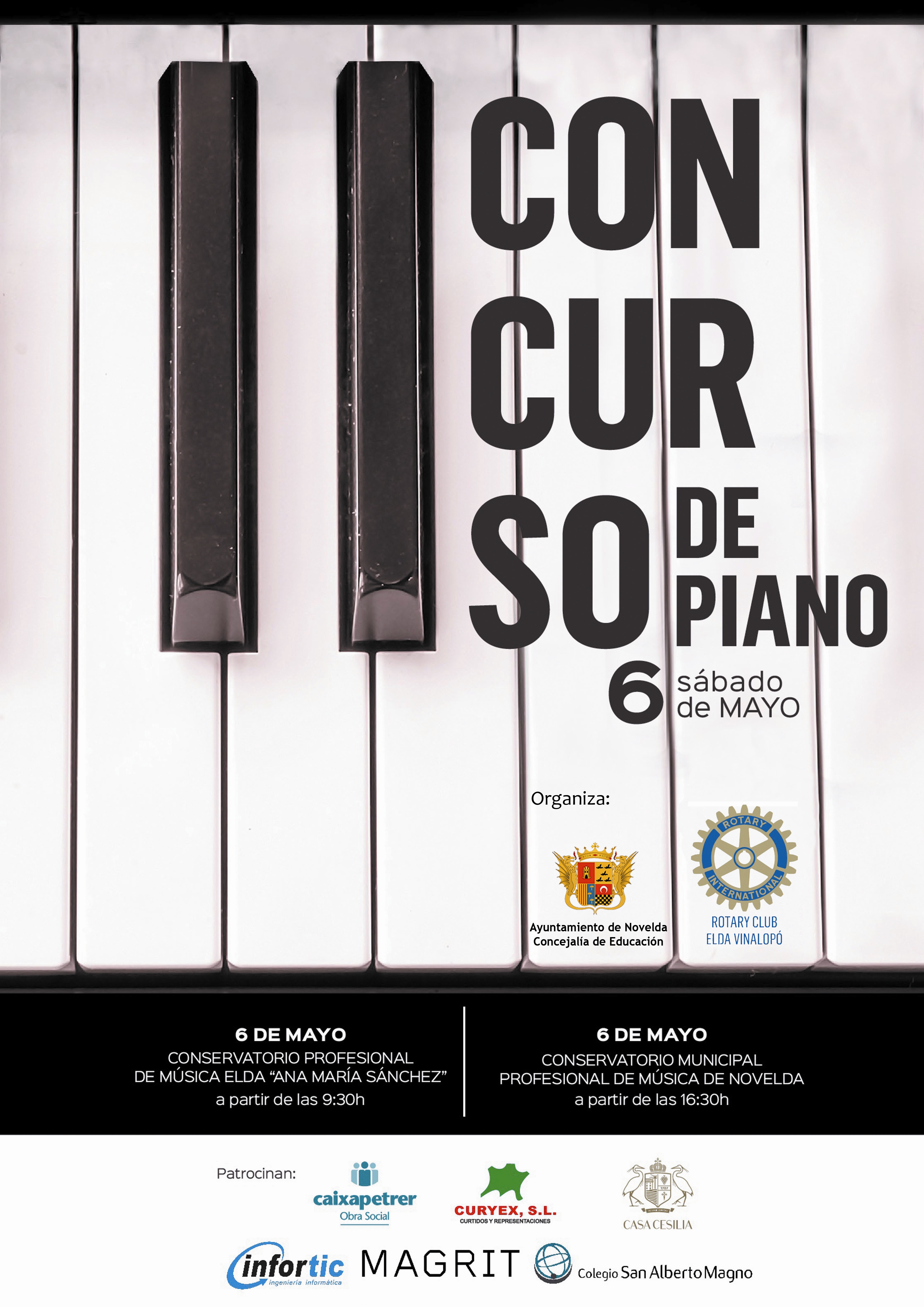 CULTURA, EDUCACIÓN El Conservatorio Profesional de Música acoge la segunda edición del Concurso de Piano Autor Magda Campos Fecha 5 mayo, 2017 El Club Rotary de Elda organiza, por segundo año consecutivo, el Concurso de Piano...