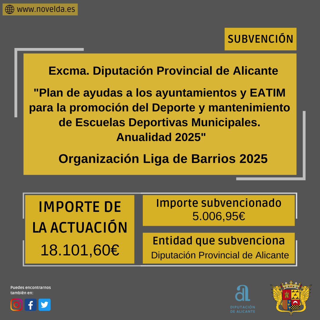 DEPORTES Deportes recibe una subvención de Diputación para la realización de actividades deportivas Autor admin Fecha 3 octubre, 2025 El Ayuntamiento de Novelda ha recibido de la Diputación Provincial de Alicante, en el...