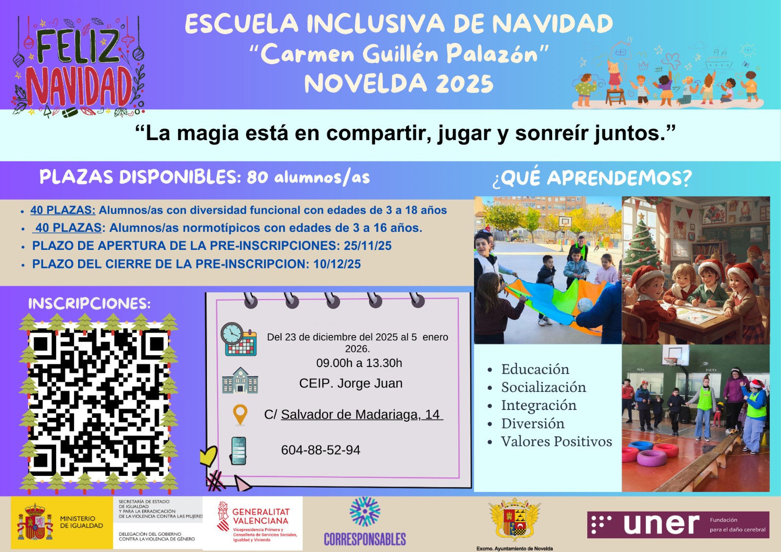 La concejalía de Educación pone en marcha, bajo el lema “La magia está en compartir, jugar y sonreír juntos”, una nueva edición de la Escuela Inclusiva de Navidad, una iniciativa destinada a menores de entre 3 y 18 años que busca facilitar la conciliación familiar, ofrecer un respiro a las familias, promover la inclusión social y ayudar a mantener las rutinas de los pequeños durante el periodo vacacional, adaptándose a las necesidades específicas de cada participante.