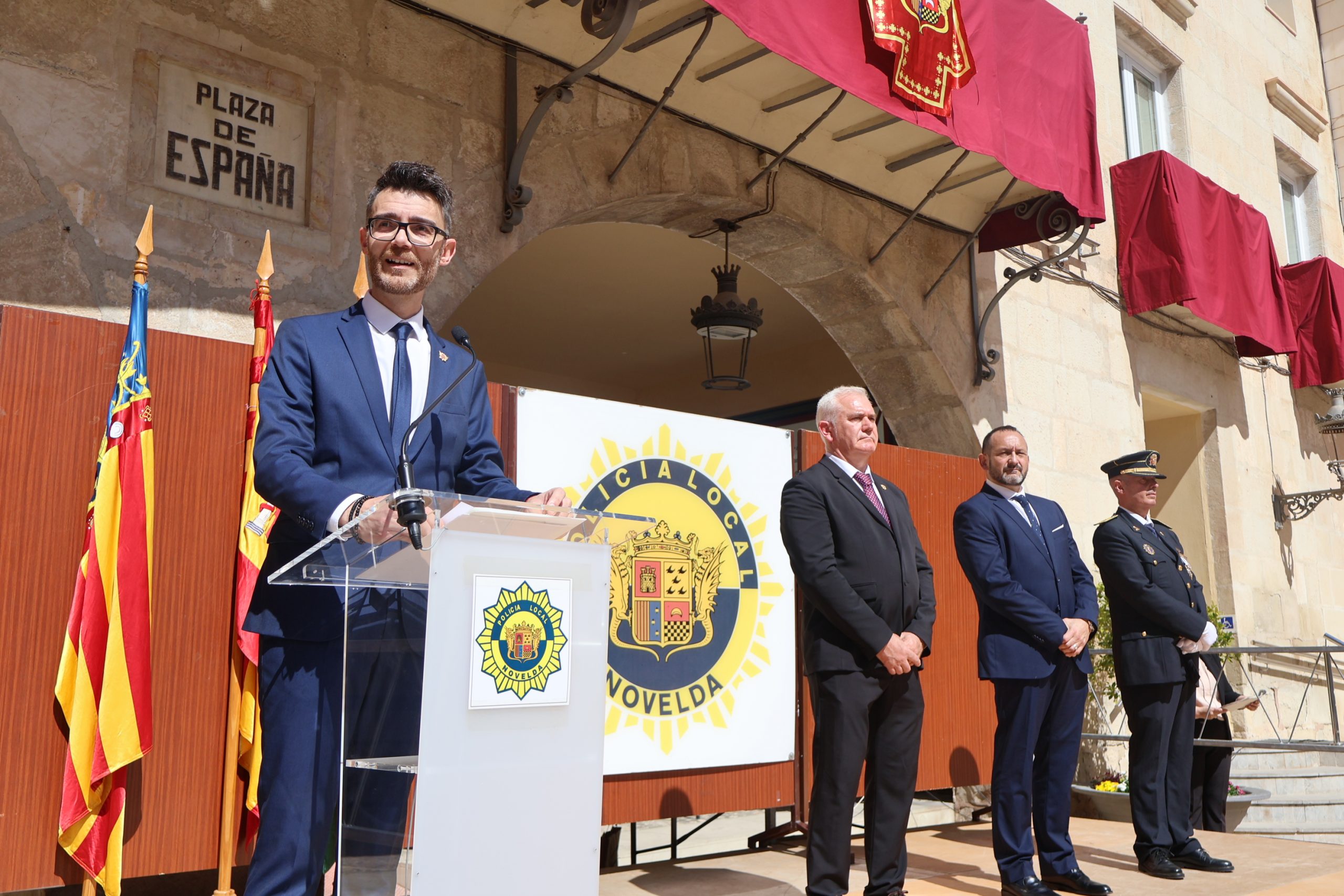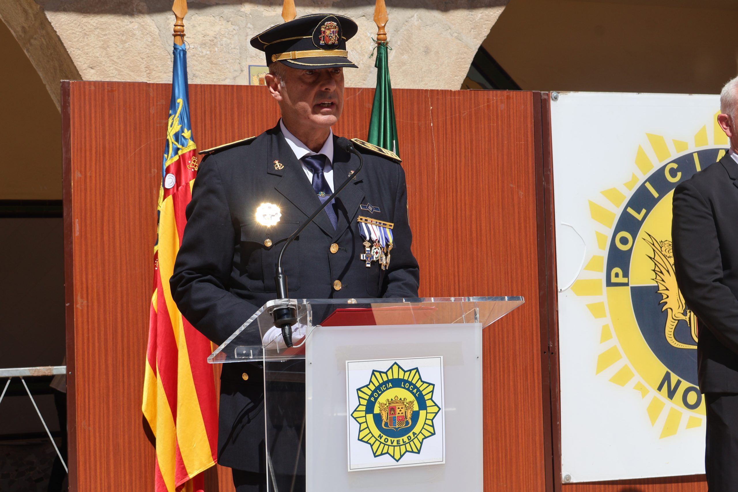 El acto, presidido por el alcalde de Novelda, Fran Martínez, ha contado con la presencia del concejal de Seguridad Ciudadana, Ximo Mira, el intendente jefe de la Policía Local, Rafael Sarrió, miembros de la corporación municipal, representantes del ámbito judicial, Guardia Civil, Policía Autonómica, Protección Civil y Policía Local de diferentes municipios, así como el director general de Seguridad Pública de la Generalitat Valenciana, Erich Vanacloig.