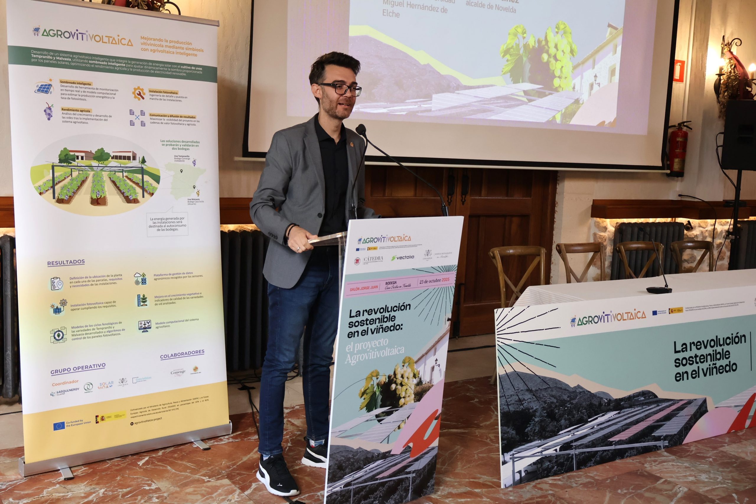 Los viñedos de la bodega Casi Sicilia acogen el proyecto piloto de esta iniciativa agrovitivinícola que está probando y validando soluciones agrivoltaicas, con la implantación de sistemas que no solo servirán como instalaciones de autoconsumo energético para la bodega, sino que también permitirán un manejo más preciso del microclima en el viñedo, gracias a sensores inteligentes que adaptan el sombreado a las necesidades específicas de cada cultivo. Esta adaptación inteligente promete optimizar las condiciones de crecimiento, mejorar la calidad de las cosechas y reducir significativamente el consumo de agua.