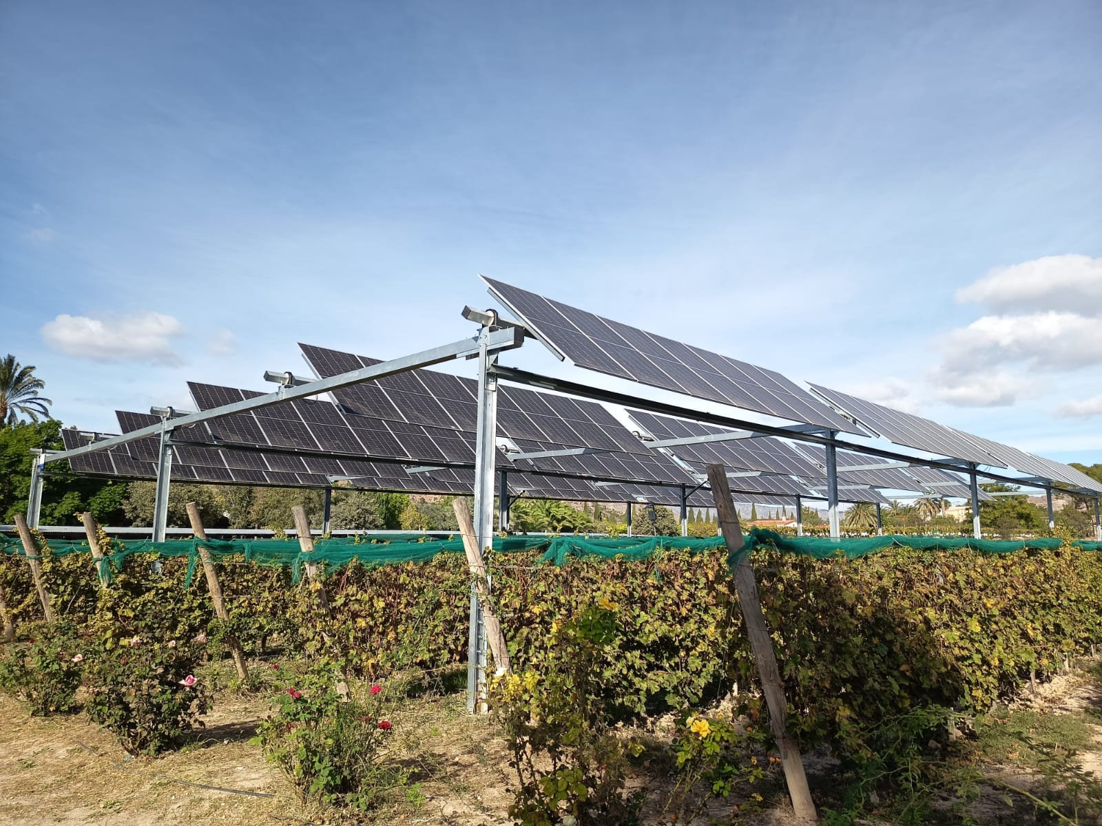 Esta tecnología integra paneles solares sobre los cultivos, proporcionando sombra y ayudando a conservar la humedad del suelo, factores críticos para el desarrollo óptimo de la vid.