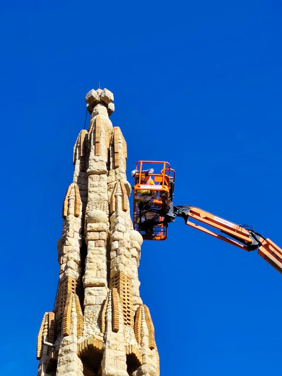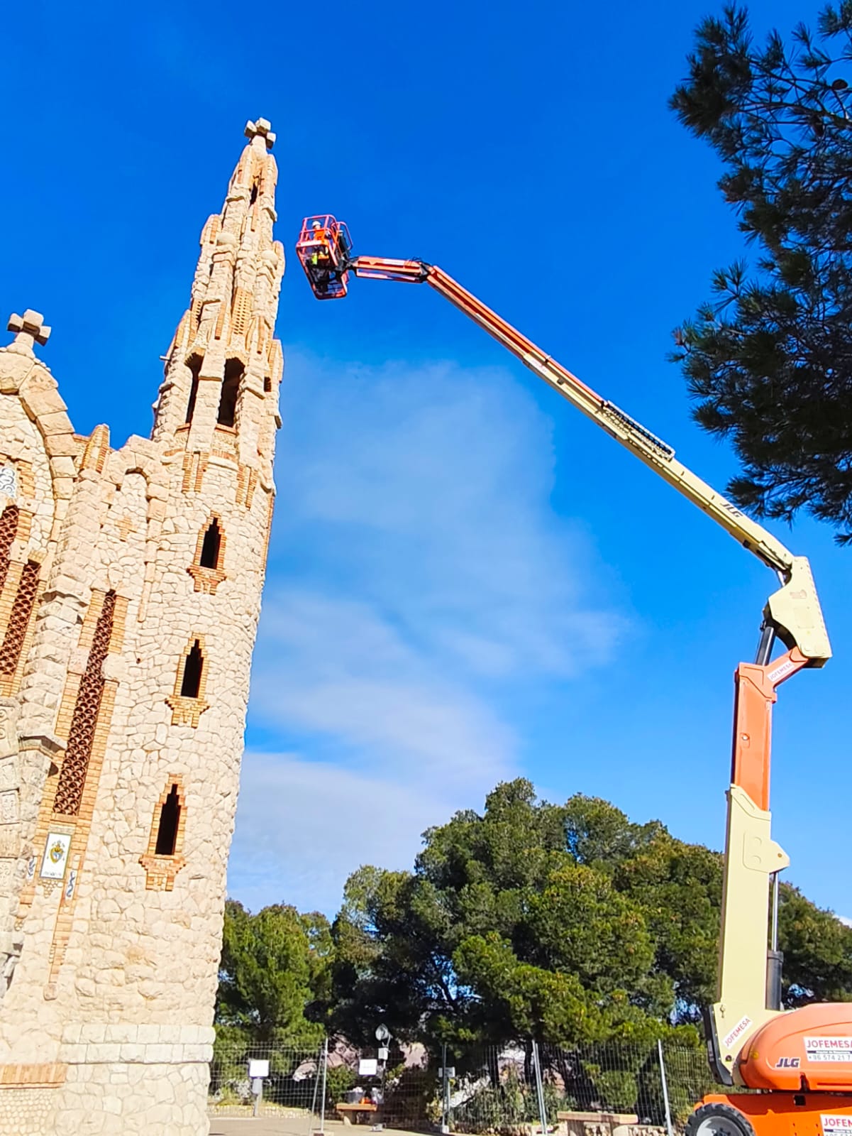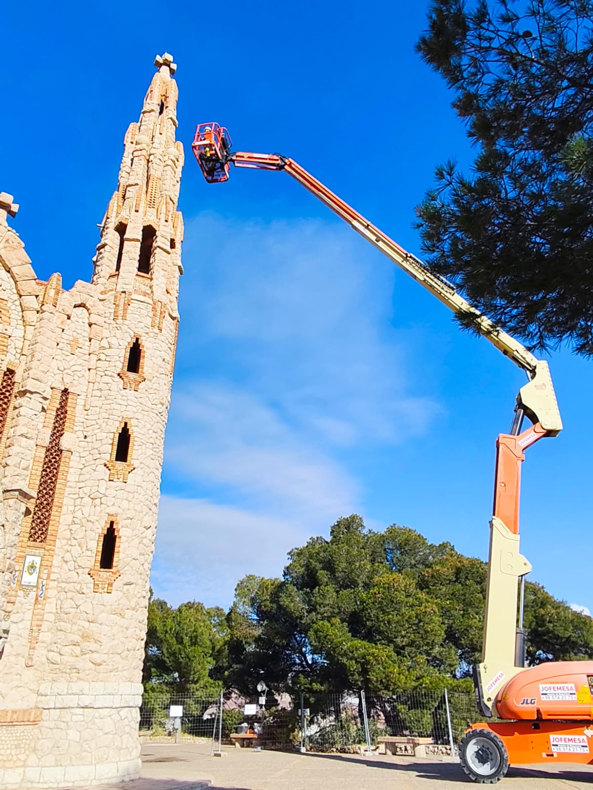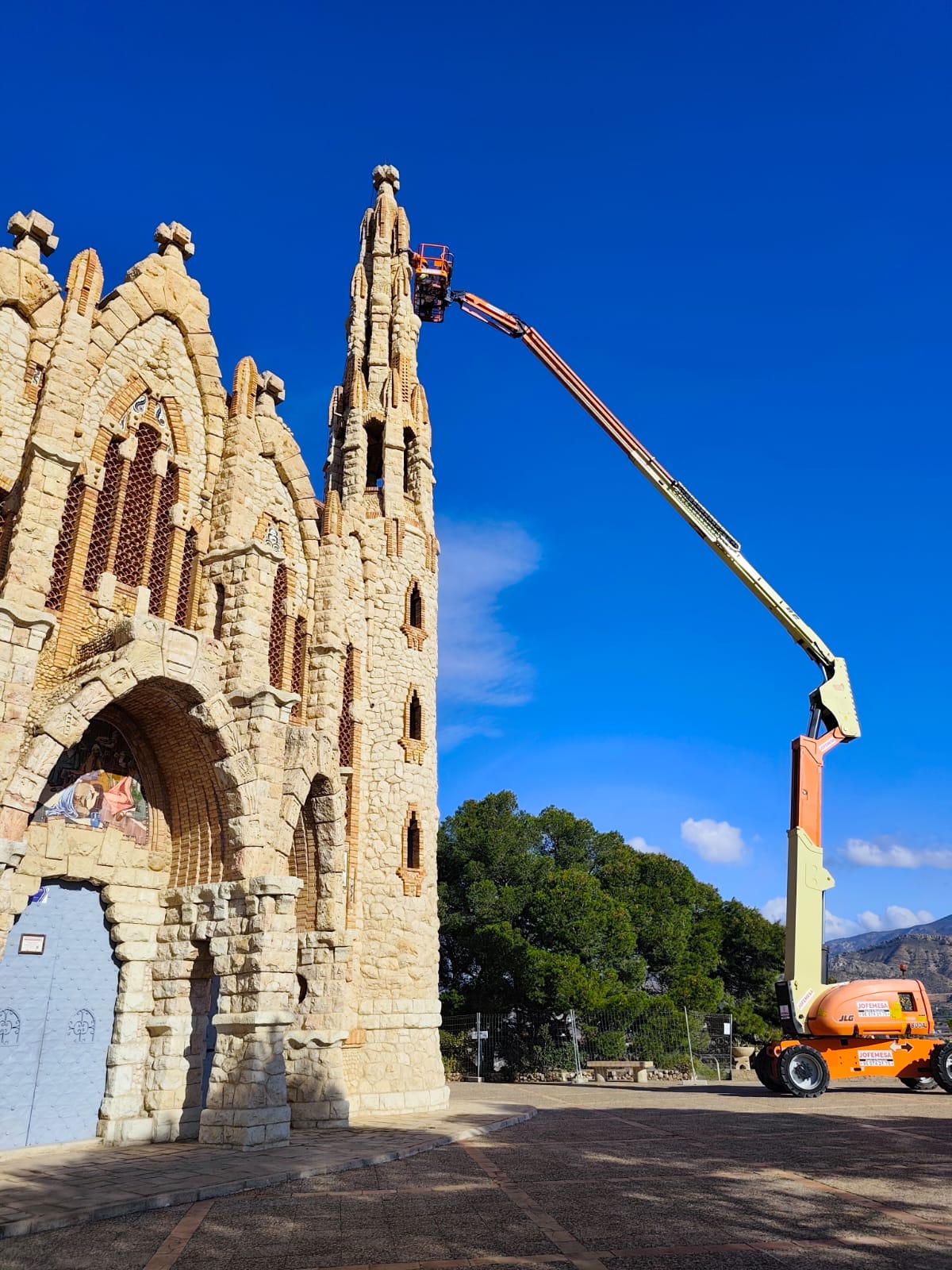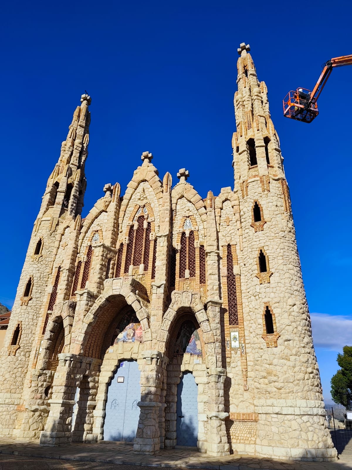 El Ayuntamiento de Novelda ha puesto en marcha, a través de una empresa especializada, las actuaciones preventivas de seguridad en la torre izquierda del Santuario de Santa María Magdalena, apenas unos días después de que se detectaran grietas longitudinales de envergadura considerable que obligaron al cierre temporal del recinto como medida de seguridad.