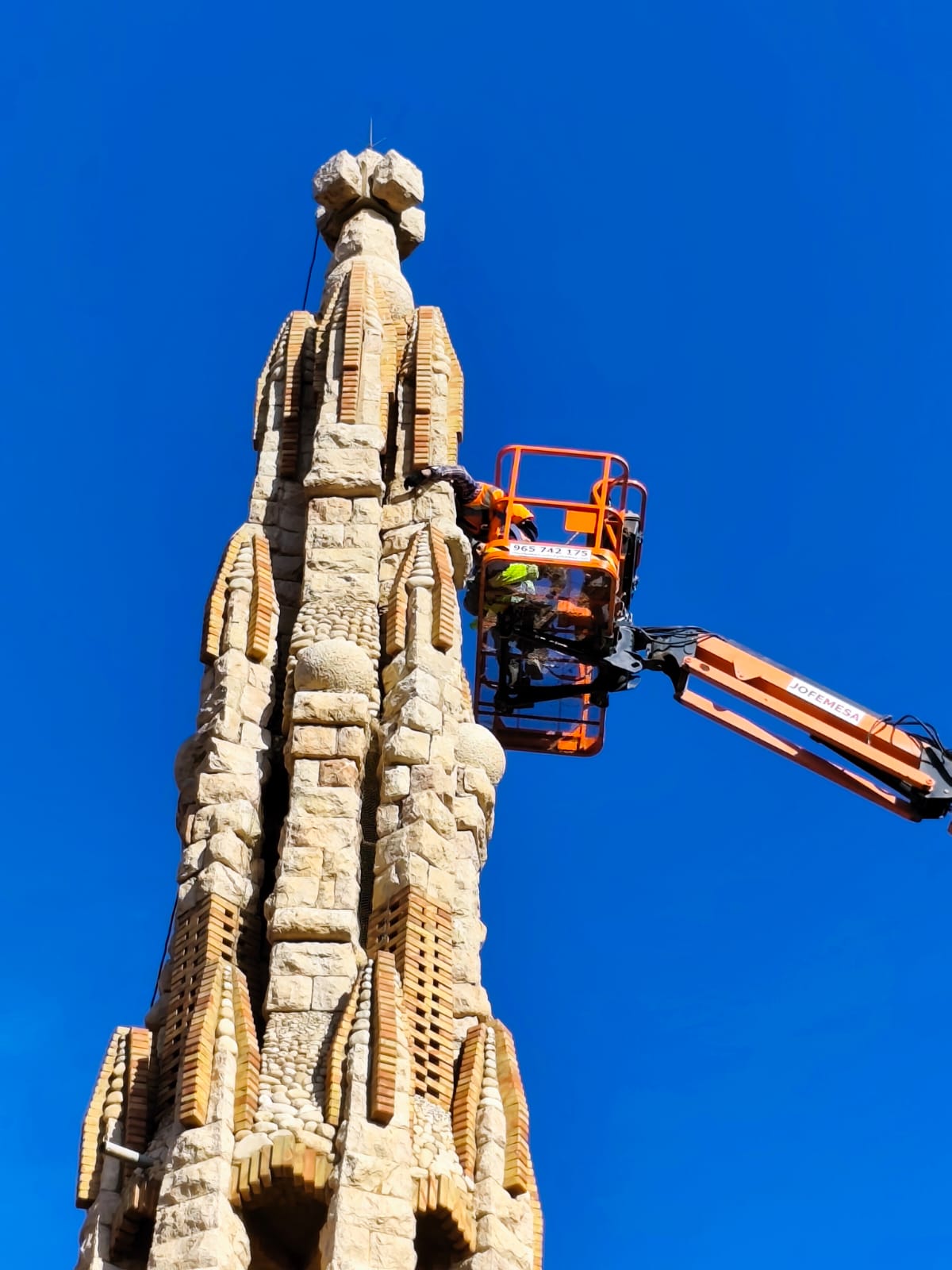 La intervención, de carácter urgente y preventivo, está siendo ejecutada por técnicos especializados mediante la colocación de eslingas perimetrales y un mallazo de protección, con el objetivo de asegurar la torre y evitar posibles desprendimientos mientras se realiza un estudio en profundidad para determinar las causas que han provocado esta patología estructural.