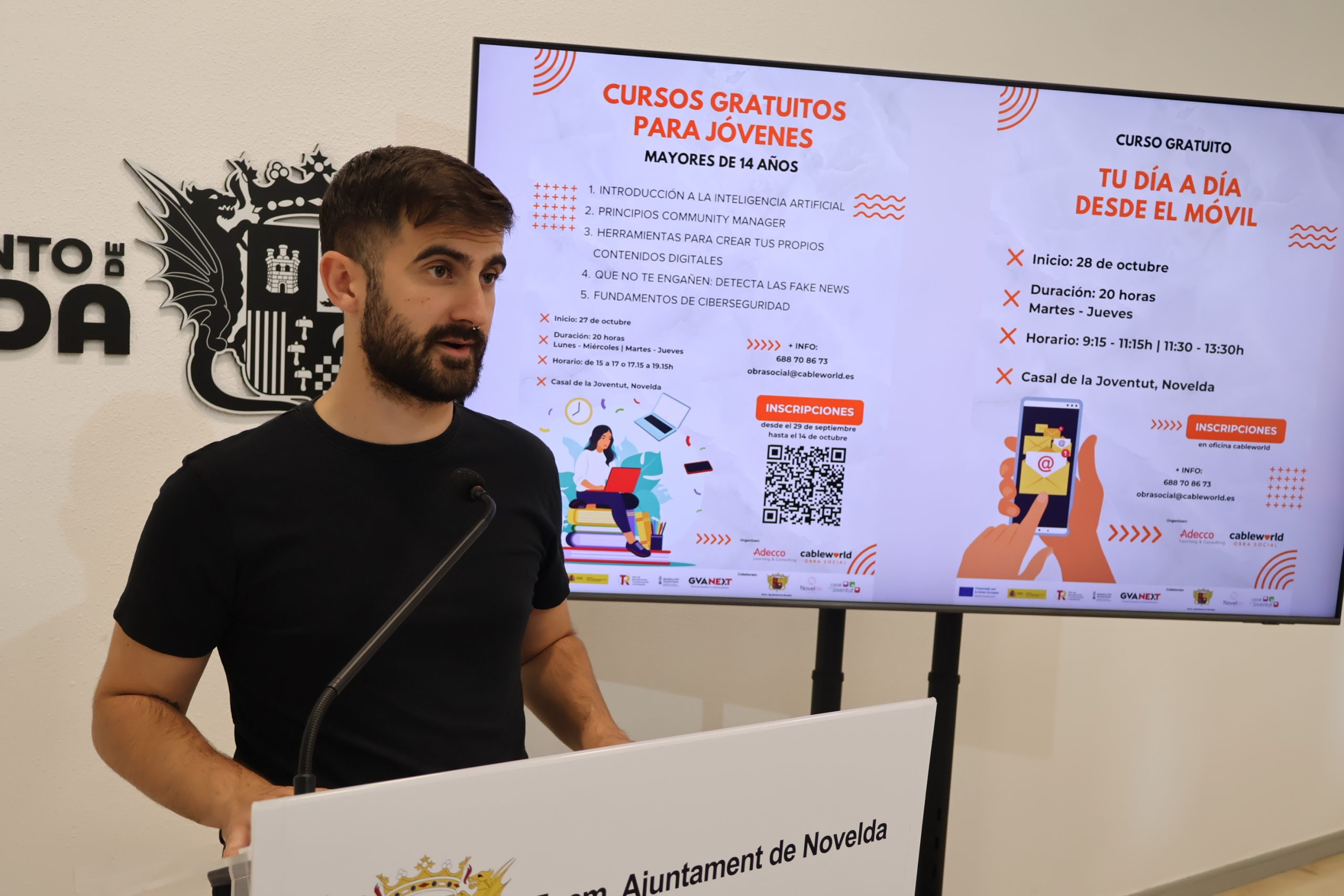 La concejalía de Juventud del Ayuntamiento de Novelda, en colaboración con la Obra Social de Cableworld, ha puesto en marcha un programa formativo gratuito dirigido a jóvenes mayores de 14 años, con el objetivo de acercarles contenidos digitales de gran actualidad como la inteligencia artificial, las fake news o la ciberseguridad.