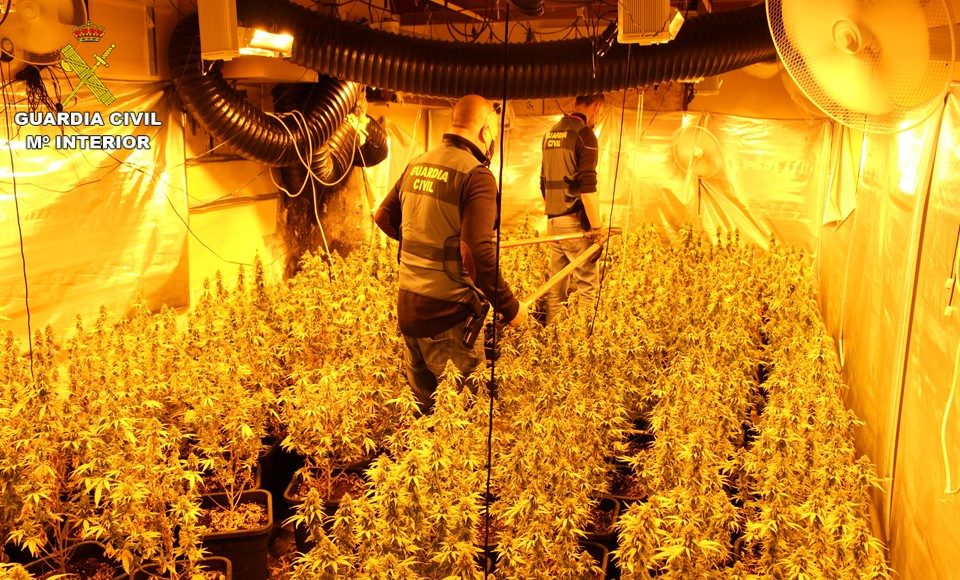 La Guardia Civil ha incautado, gracias a la Operación Bluepool, casi 1.000 plantas de marihuana y numerosos enseres para su cultivo y envase en una casa de campo en Novelda.