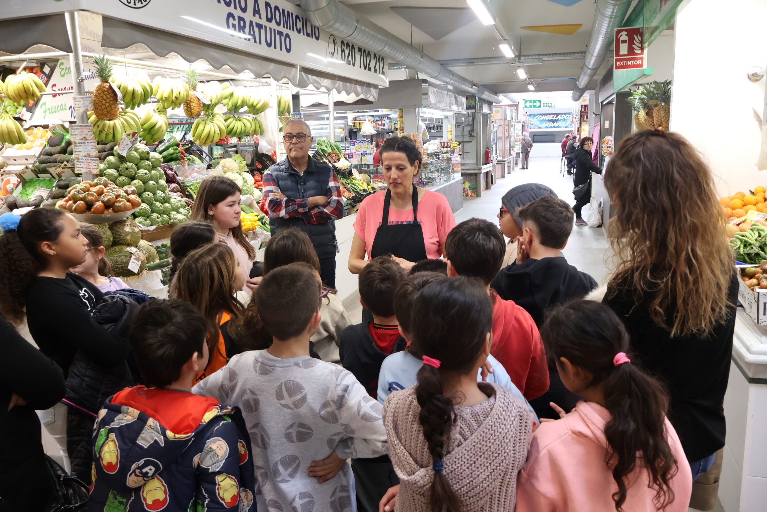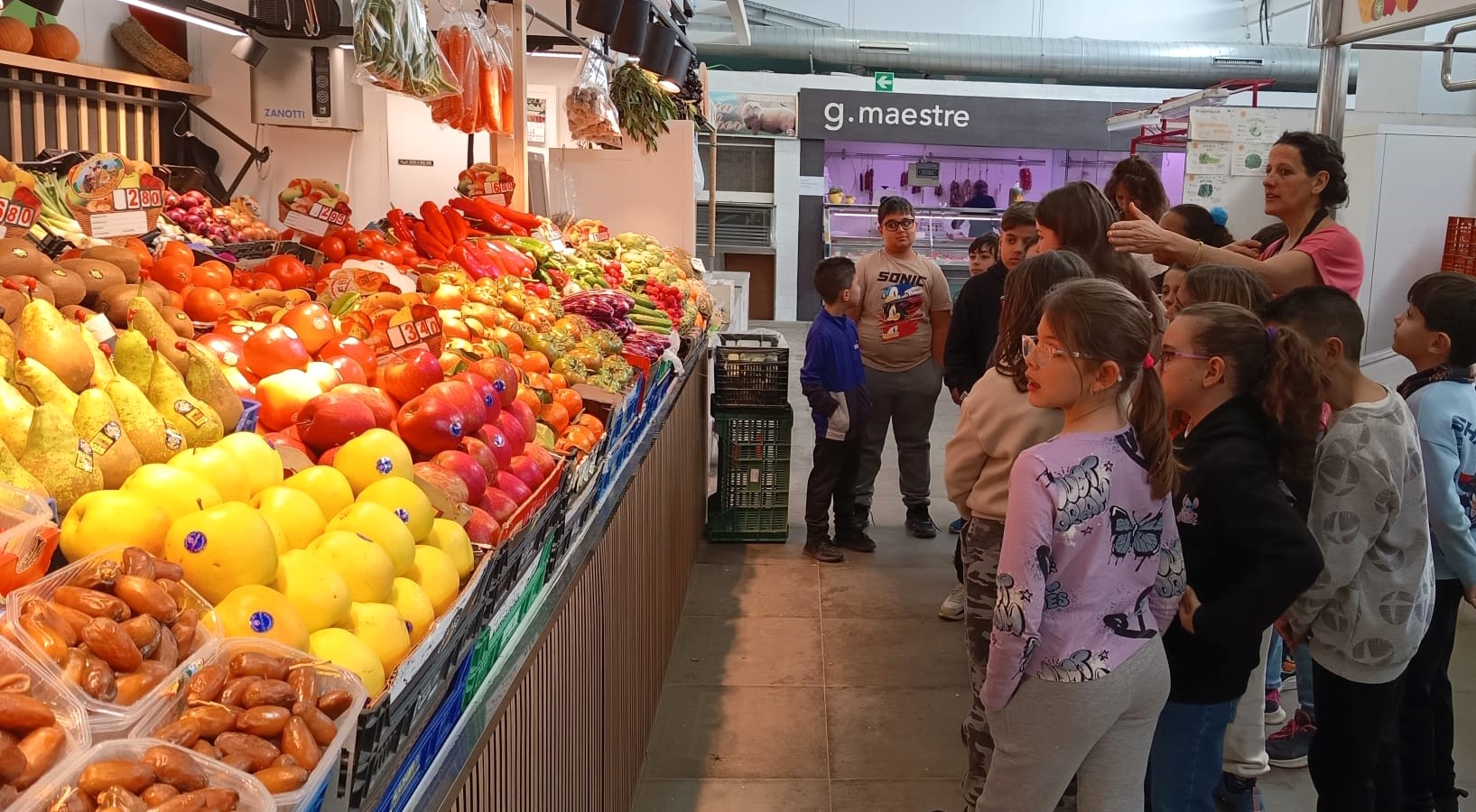 Durante las sesiones, el alumnado participa en una visita guiada por los distintos establecimientos del mercado, donde se abordan contenidos relacionados con los grupos de alimentos, sus propiedades nutricionales, métodos de producción, temporalidad y su incorporación a la dieta diaria. Asimismo, se pone en valor el papel del comercio local y la relevancia de apoyar el consumo de proximidad.