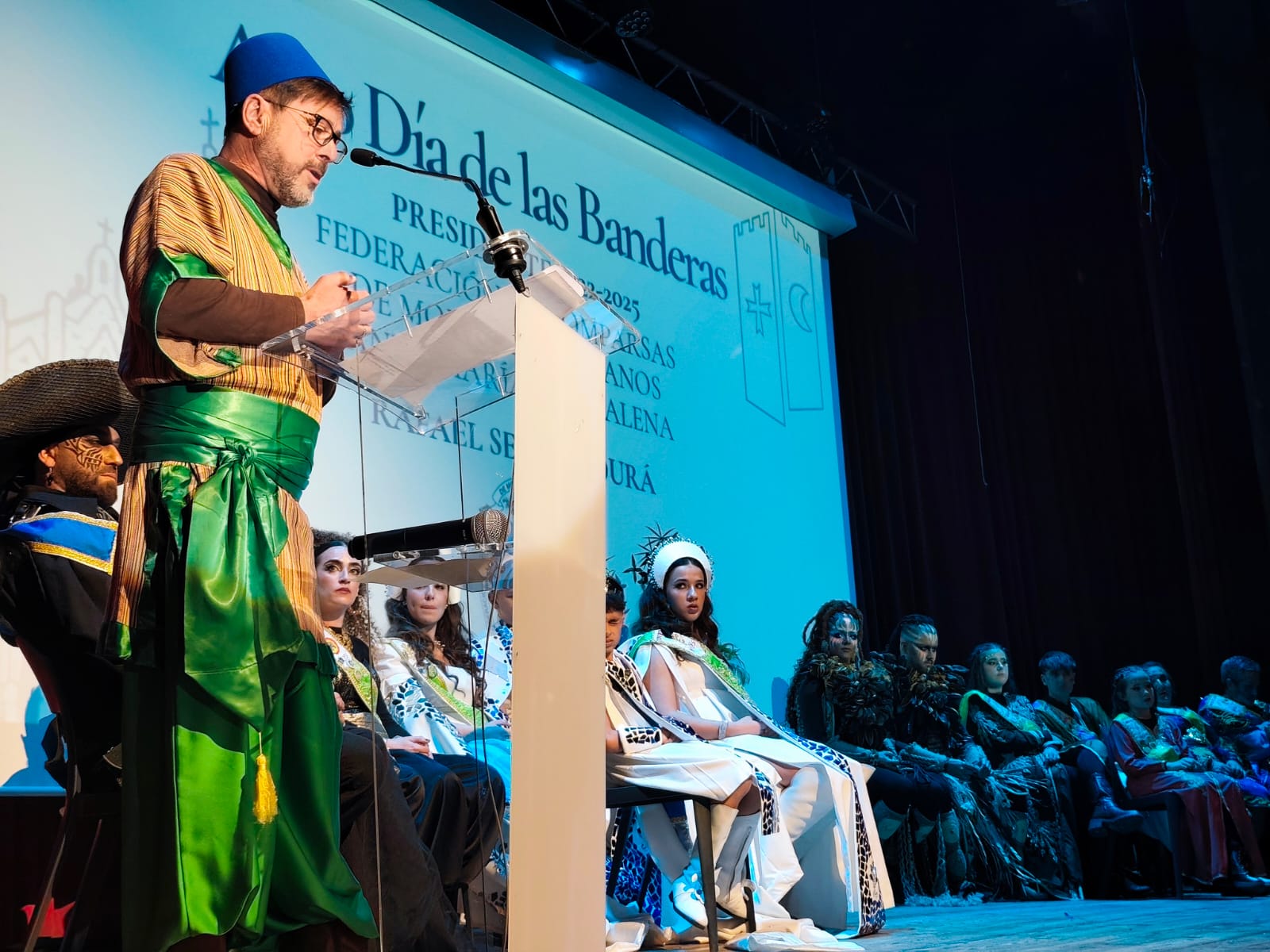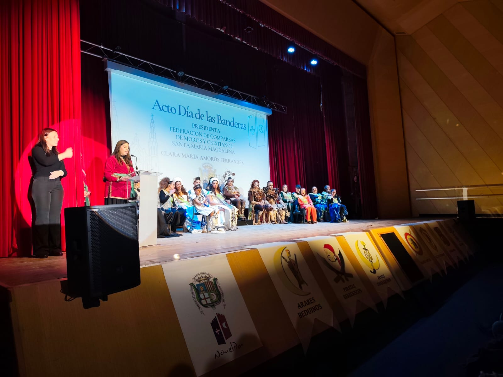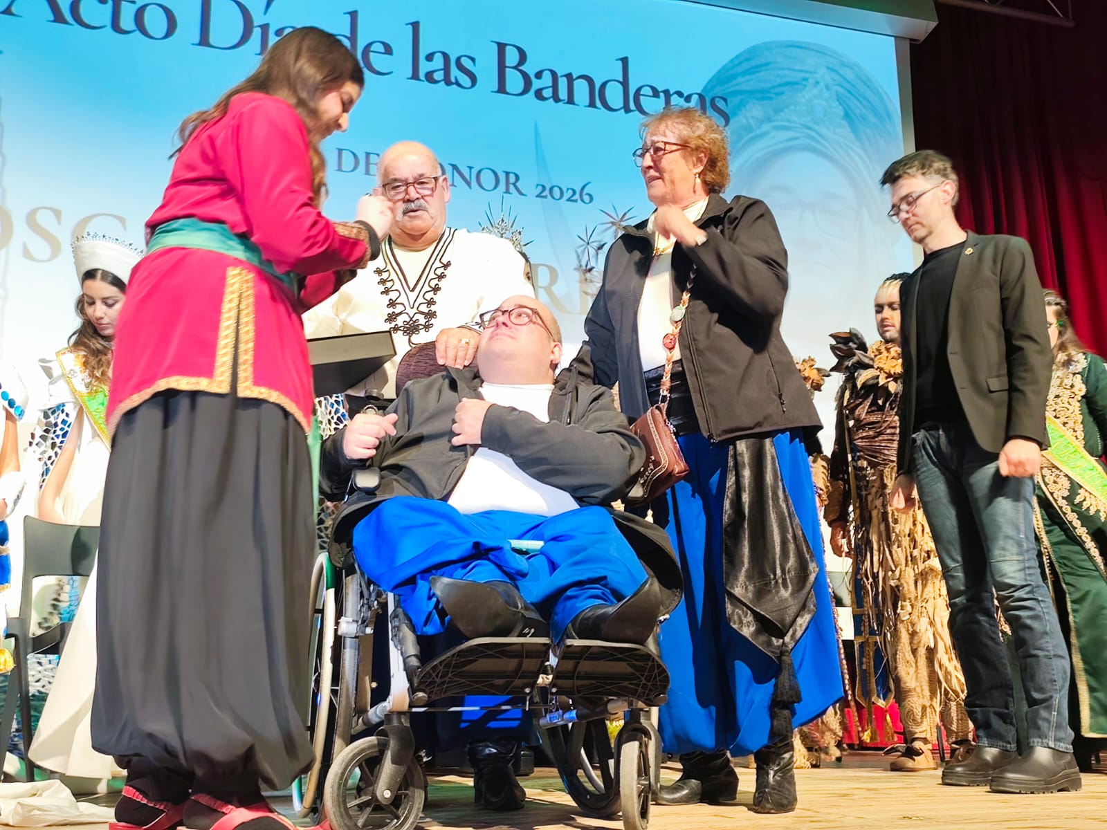 Óscar Ruiz Triviño, Fester d’Honor 2026, Elena Martínez Cantó, directora del pasodoble “Festeros de Novelda” 2026, la filà “No Tenim Remei”, de la comparsa Astures, con el García Terol como mejor filà del bando cristiano, junto a María Díez Berenguer, también de Astures, con el premio José María Belló al mejor cabo cristiano, así como la filà “Mandingas” de Negres Betànics, que recibió el premio Arcadi Blasco a la mejor filà del bando moro; Marta Serrano Cabrerizo, premio Eduardo Espinosa Meco al mejor cabo del bando moro y la comparsa Árabes Omeyas, premiada por la mejor parodia de la retreta, fueron los protagonistas del Día de las Banderas, el acto central del Mig Any Fester celebrado a lo largo del fin de semana y con el que los Moros y Cristianos de Novelda han despedido a los cargos festeros de 2025.