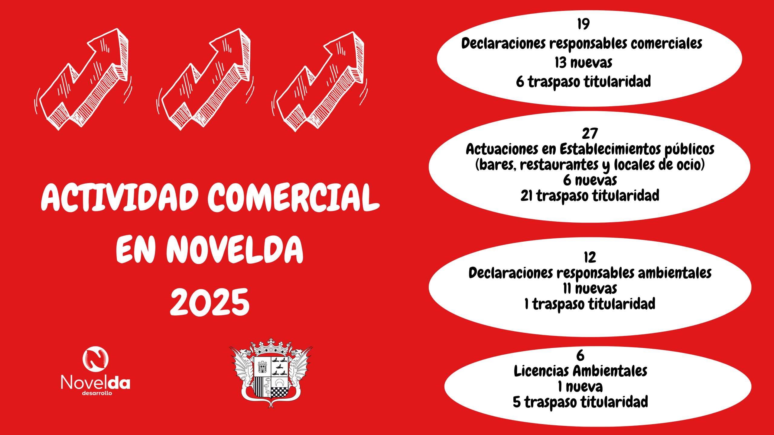 Novelda mantiene con cifras positivas la actividad económica y comercial, con la tramitación de 67 expedientes vinculados a la apertura, continuidad y renovación de actividades tramitados por la concejalía de Actividades Económicas a lo largo de 2025, un periodo que, en palabras de la titular del departamento Isabel Miralles, ha mantenido la “tendencia positiva sostenida en el tiempo”, dando continuidad a los buenos datos obtenidos en 2024 que ponen de relieve el “trabajo constante, la planificación y el compromiso del gobierno municipal con el tejido económico local”.