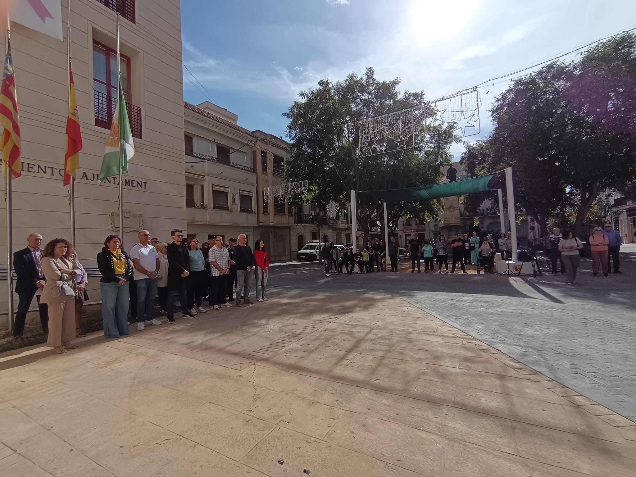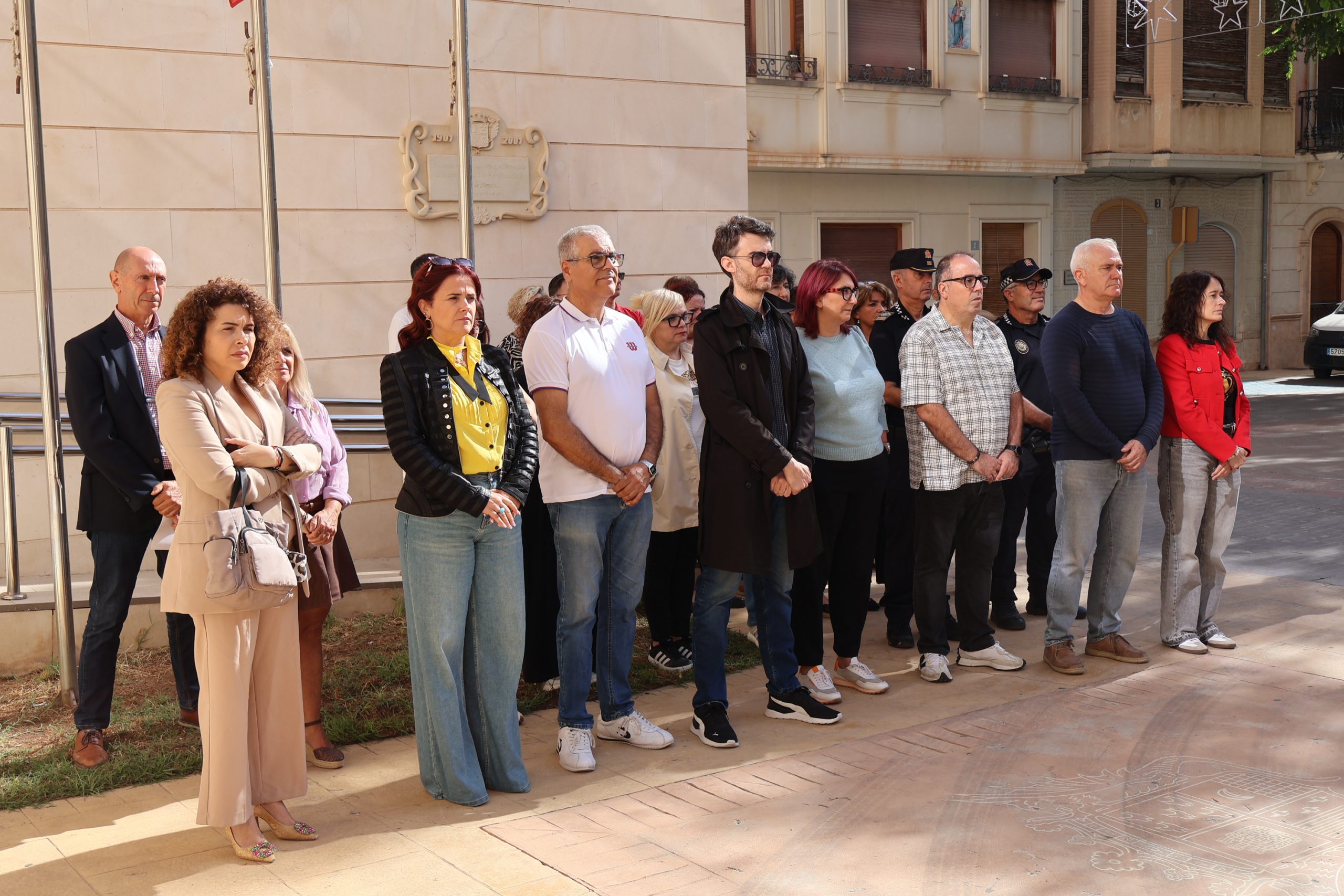 Novelda ha guardado esta mañana un minuto de silencio a las puertas del Ayuntamiento en memoria de las 229 víctimas mortales causadas por la DANA que azotó la Comunitat Valenciana el pasado año.