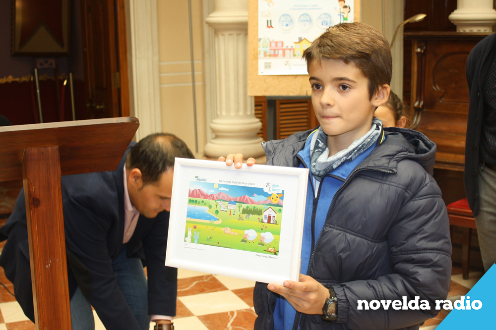 El Centro Cultural Gómez-Tortosa acogió la entrega de premios de la XVI Edición del Concurso de Dibujo Infantil que organiza Aqualia con motivo del Día Mundial del Agua y en la que resultaron finalistas Pablo Martínez, del Colegio San José de Cluny, e Inés Rico, del centro Alfonso X el Sabio, que recibieron dos cámaras digitales como premio a su trabajo sobre el ciclo del agua.