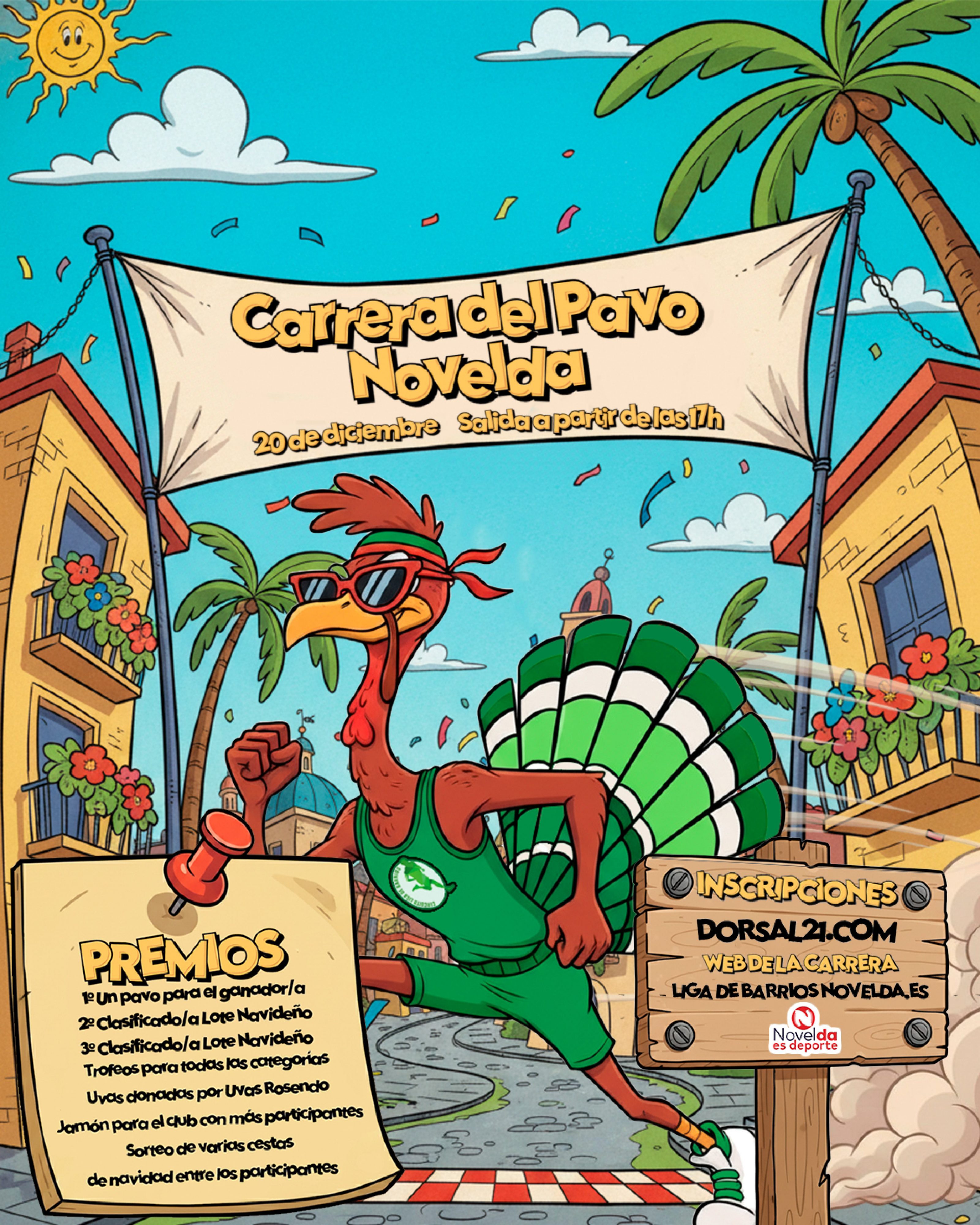 La Glorieta volverá a acoger, el próximo sábado 20 de diciembre, a partir de las 17:00h, una nueva edición de la tradicional Carrera del Pavo, una prueba organizada por la concejalía de Deportes, con la que se cierra la tercera edición del circuito Liga de Barrios.